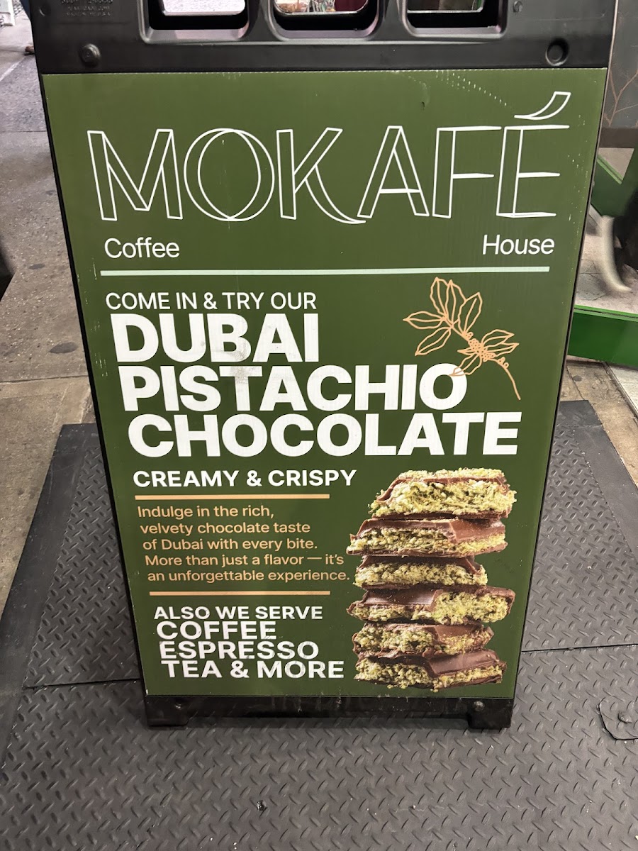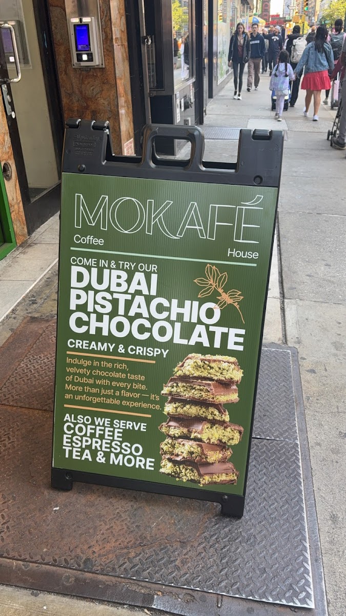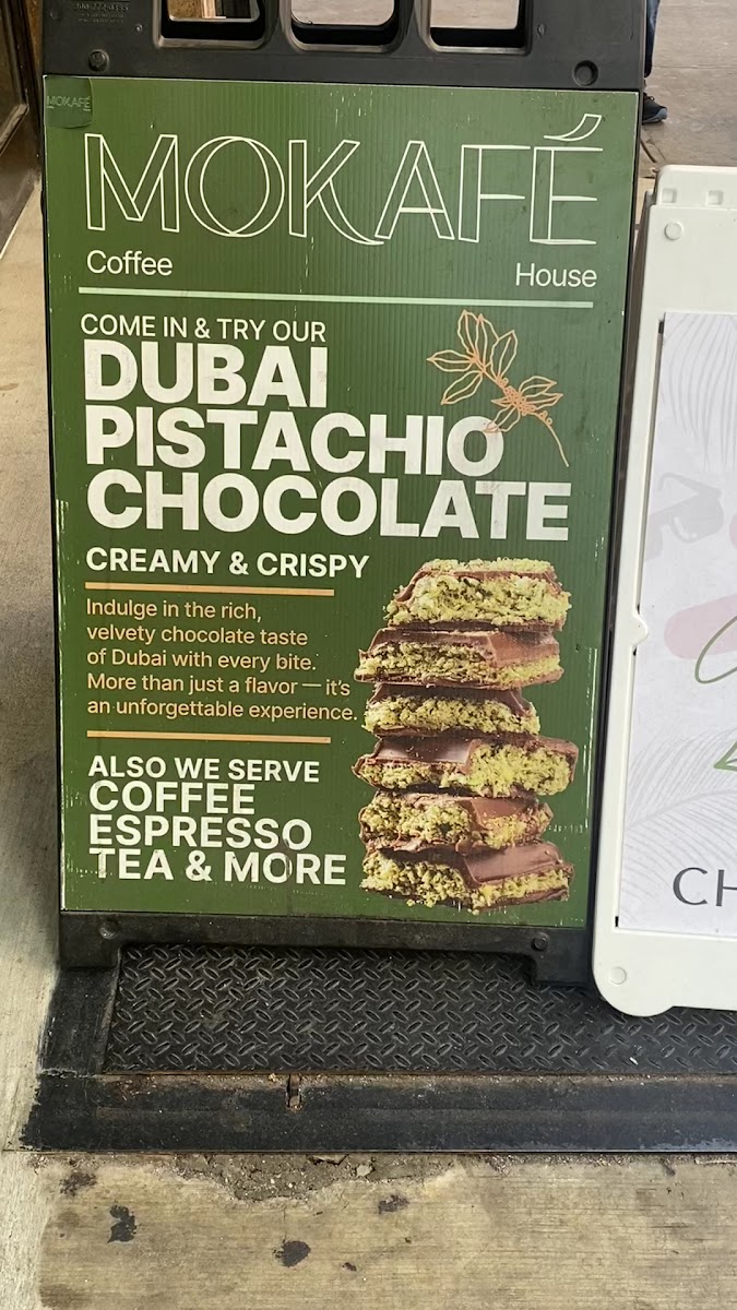 “ We were drawn in for the Dubai chocolate. We went for the straight chocolate bars & it was amazing. The flavor & texture were so amazing! We also shared a pot of mint tea. The mint was so fresh & flavorful. The tea was piping hot to the last sip. When we finished, the glass pot was still super hot. We are only here for 5 days but coming back for sure. ”